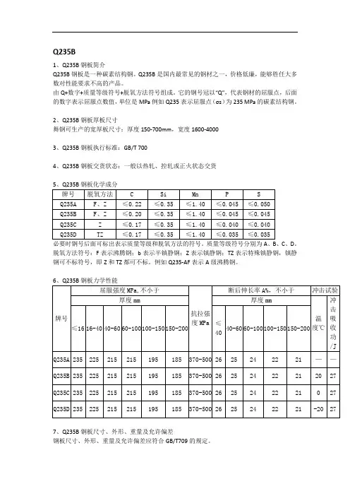 总的来说,Q235钢材是一种常用的结构钢材料,具有较好的强度、塑性和焊