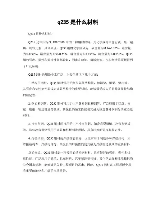 Q235是中国标准GB/T700中的一种钢材材料,其化学成分中含有碳、硅、锰、磷、硫等元素。