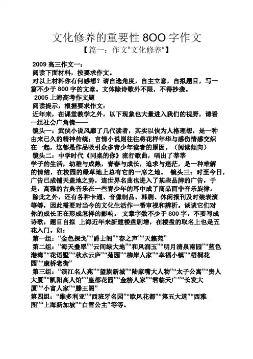 文化修养的重要性8OO字作文【篇一:作文“文化修养”】2009高三作文一:阅读下面材料,按要求作文。