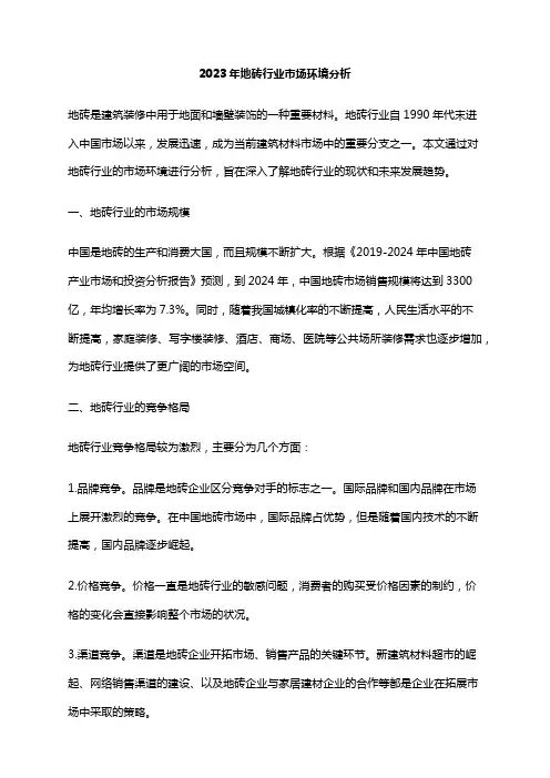 本文通过对地砖行业的市场环境进行分析,旨在深入了解地砖行业的现状和未来发展趋势。
