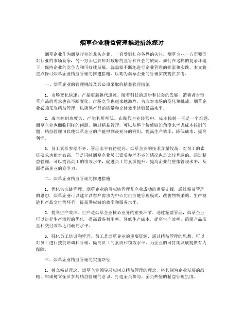 二、烟草企业精益管理的重要性(一)推动企业管理方式的变革由于历史和现实的原因,粗放型的管理方式在烟草企业中广泛存在着。