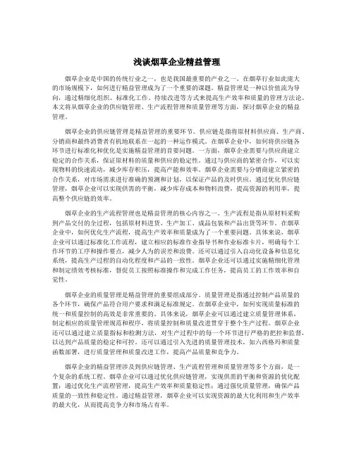浅谈烟草企业精益管理烟草企业是中国的传统行业之一,也是我国最重要的产业之一。
