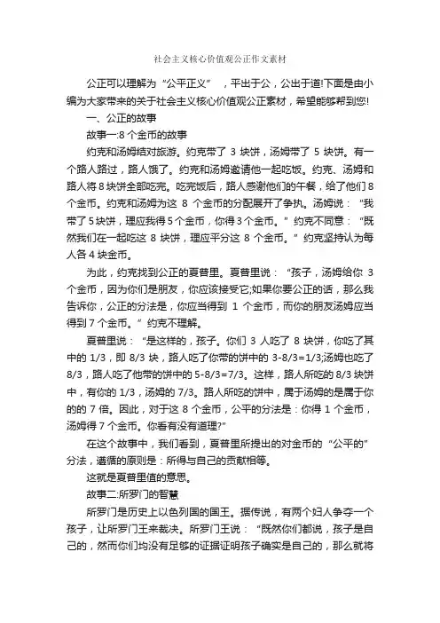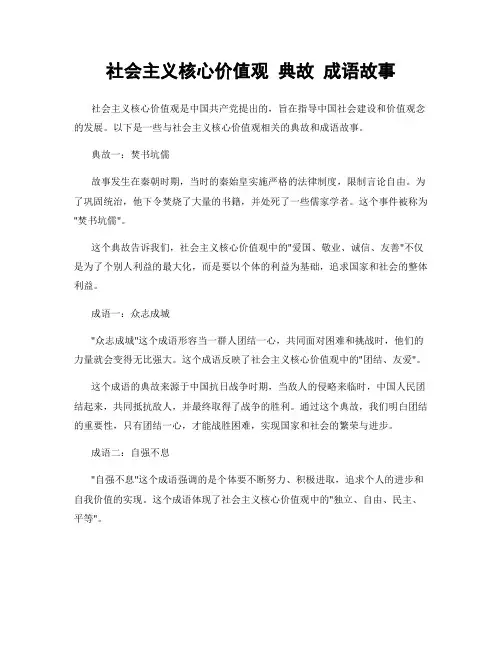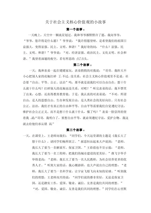 社会主义核心价值观小故事在我们生活的社会中,社会主义核心价值观是我们共同的精神家园,是我们共同的价值追求。