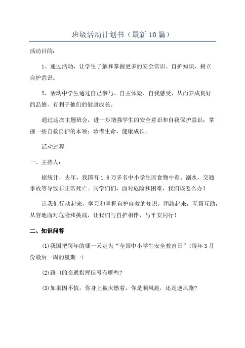 班级活动方案(通用10篇)班级活动方案篇1一、活动的目的和意义(一)意义。