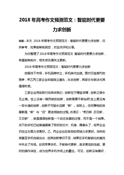 2018年高考作文预测范文:智能时代更要力求创新放眼当下市场,手机品牌林立,手机换代加速。