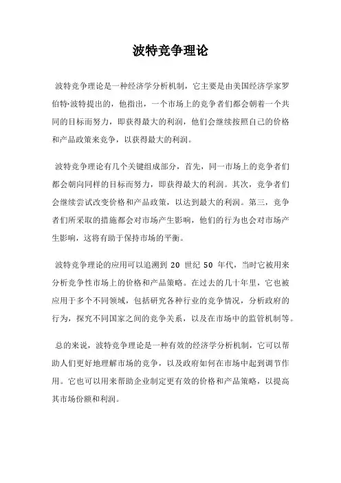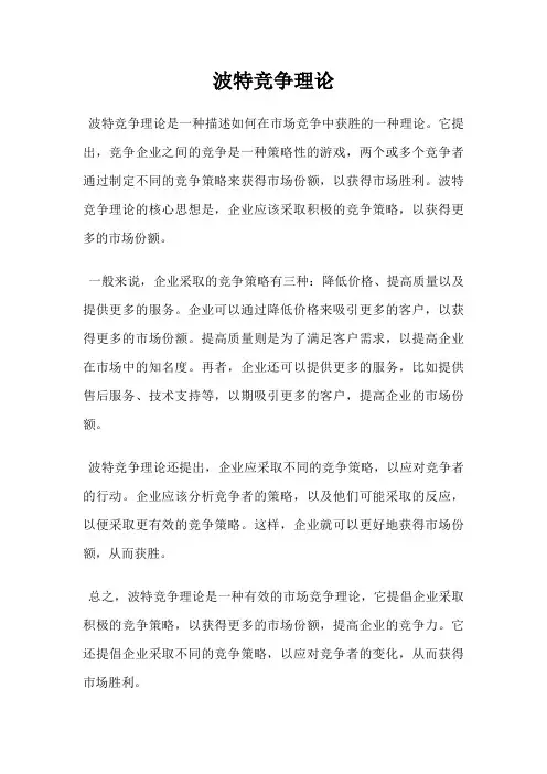 总之,波特竞争理论是一种有效的市场竞争理论,它提倡企业采取积极的竞争策略,以获得更多的市场份额,提高企业的竞争力。