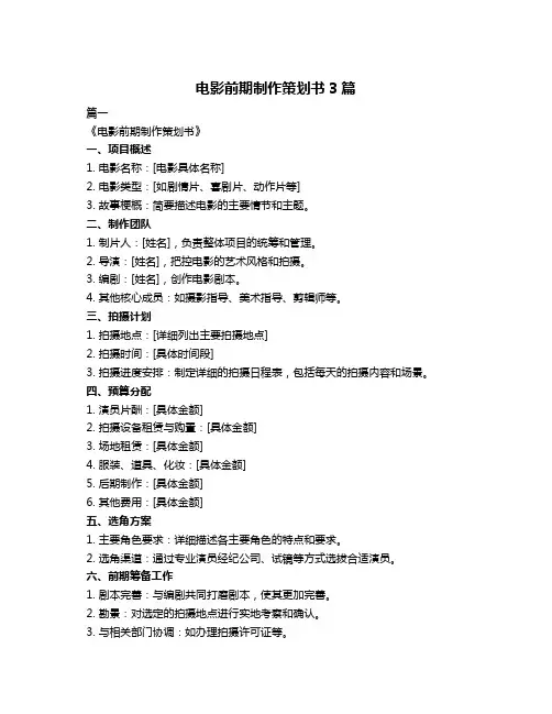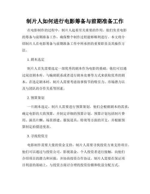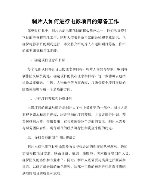 五、制作筹备和拍摄前准备在电影项目的筹备工作中,制片人需要进行制作筹备和拍摄前的准备工作。