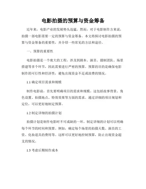 一、预算的重要性电影拍摄是一个庞大的工程,涉及到剧本、演员、摄制团队、场景搭建等多个环节,因此需要进行严密的预算。