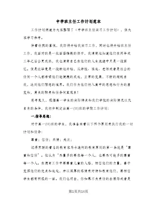 中学班主任工作计划范本工作计划频道为大家整理了《中学班主任实习工作计划》,供大家学习参考。