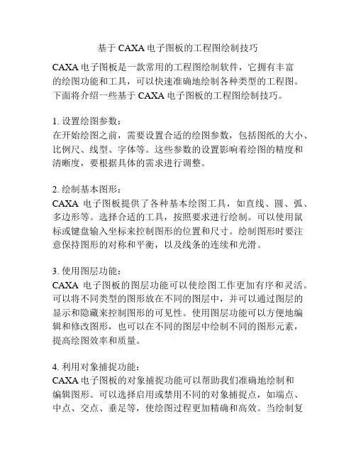 基于CAXA电子图板的工程图绘制技巧CAXA电子图板是一款常用的工程图绘制软件,它拥有丰富的绘图功能和工具,可以快速准确地绘制各种类型的工程图。