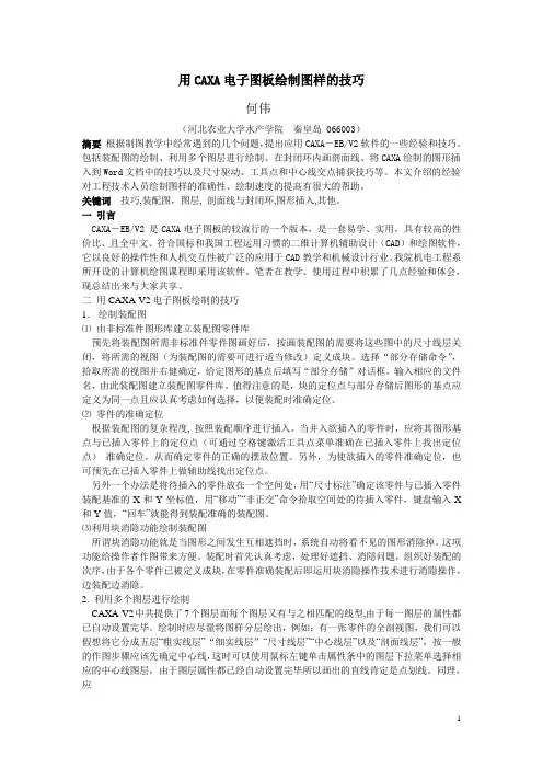 用CAXA电子图板绘制图样的技巧何伟(河北农业大学水产学院秦皇岛 066003)摘要根据制图教学中经常遇到的几个问题,提出应用CAXA-EB/V2软件的一些经验和技巧。