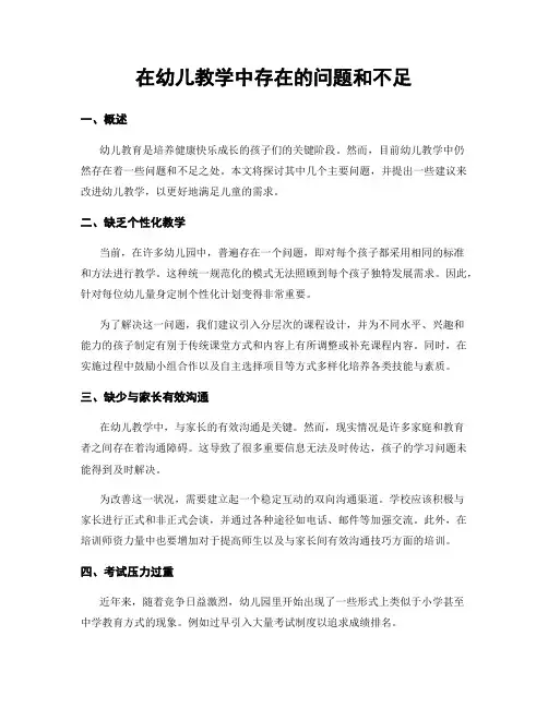 在幼儿教学中存在的问题和不足一、概述幼儿教育是培养健康快乐成长的孩子们的关键阶段。
