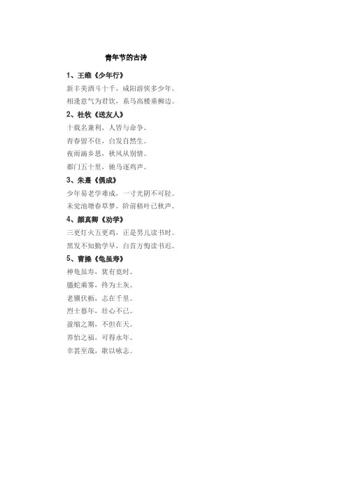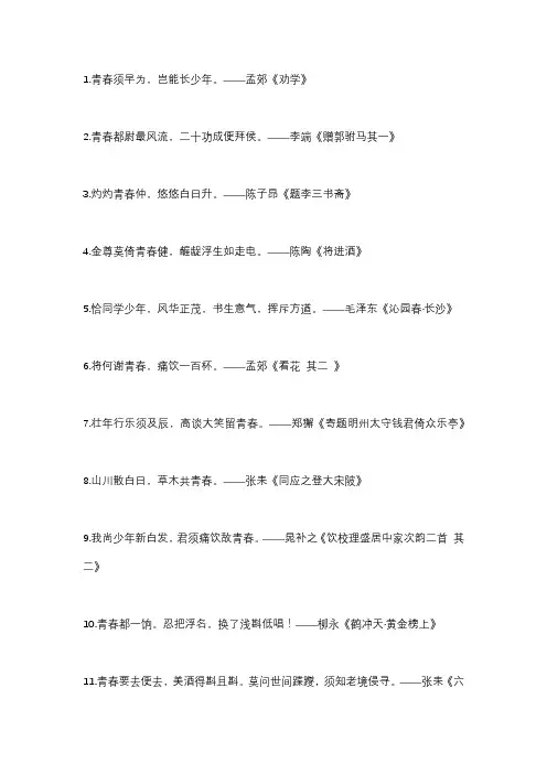 青春励志古诗词青春励志古诗词11、有志者,事竟成,破釜沉舟,百二秦关终属楚;苦心人,天不负,卧薪尝胆,三千越甲可吞吴。