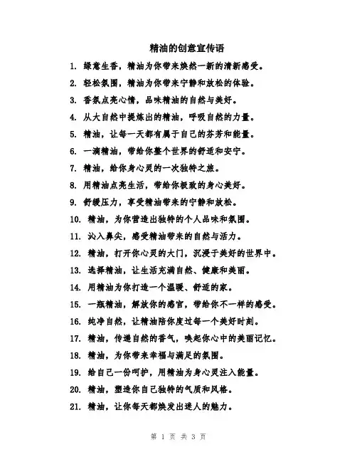 店铺精油宣传语录文案大全1. 全天然纯净,呵护心灵身体。