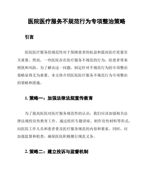 医院医疗服务不规范行为专项整治方案一、背景分析近年来,我国医院医疗服务领域存在一些不规范行为,如医疗服务价格虚高、医患关系紧张、医疗资源浪费等问题。