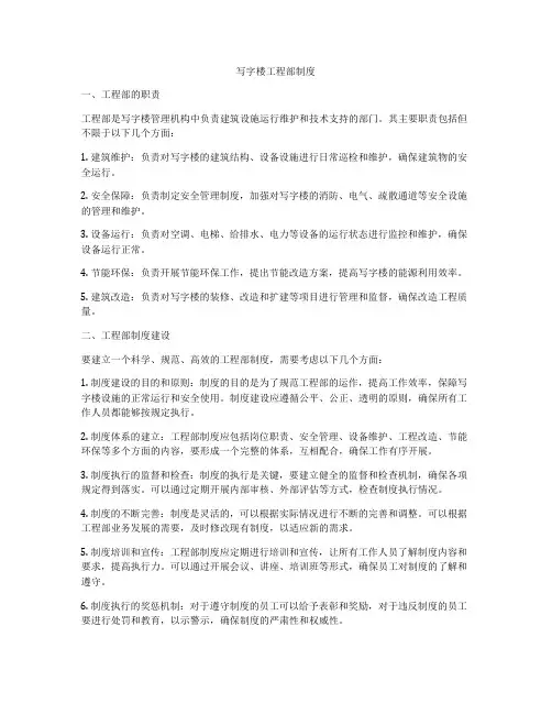 一、总则为了确保大厦的设施设备正常运行,提高大厦的物业管理水平,保障业主和使用者的安全与舒适,特制定本制度。