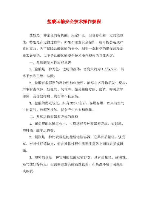盐酸安全操作规程1.引言盐酸是一种常用的化学品,广泛应用于实验室和工业生产中。