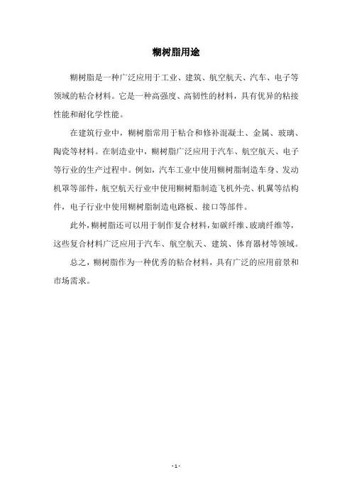 糊树脂是一种广泛应用于工业、建筑、航空航天、汽车、电子等领域的粘合材料。