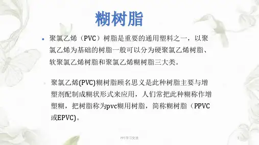 糊树脂项目简介一、糊树脂的性质及用途聚氯乙烯树脂是重要的通用塑料之一,目前我国的总生产能力已经超过2000万吨/年,成为氯碱工业生产中平衡氯气主要的产品之一。