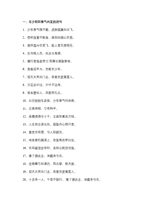 ——唐·顾况《行路难三首》4.鲜衣怒马少年时,能堪那金贼南渡?——宋·岳云《鹊桥仙》5.当时年少春衫薄。