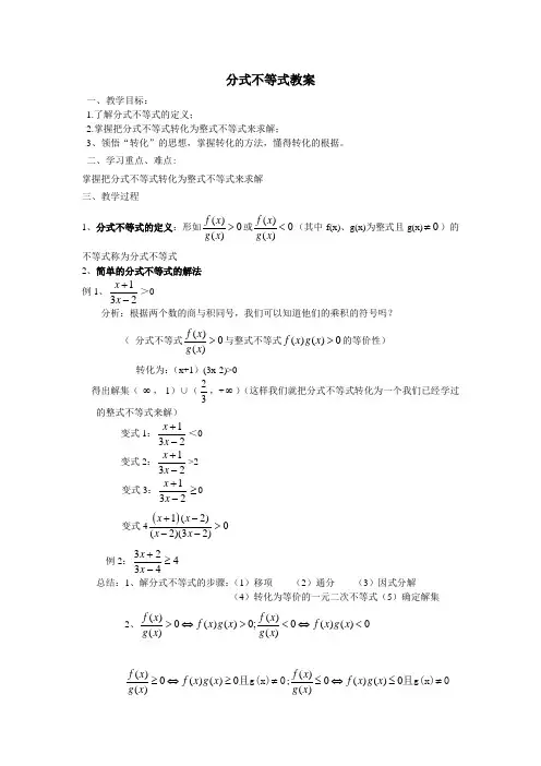 基础模块(上)不等式的基本性质教学目标:知识目标1、掌握不等式的三个基本性质。