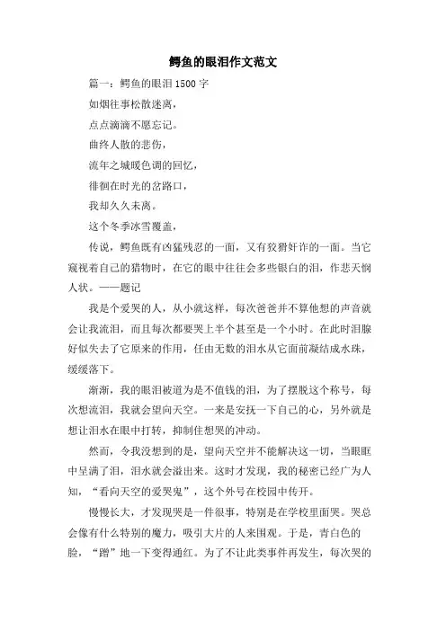 鳄鱼的眼泪作文通用4篇鳄鱼的眼泪作文 1鳄鱼并不会真正流泪,它的`泪,只是为了掩饰冷漠与虚伪。