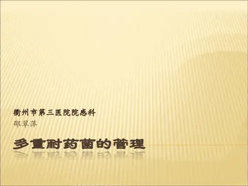 3. 多重耐药菌的管理措施针对多重耐药菌的管理,可以从以下几个方面进行措施的制定和实施:3.1 感染控制感染控制是多重耐药菌管理的基础。