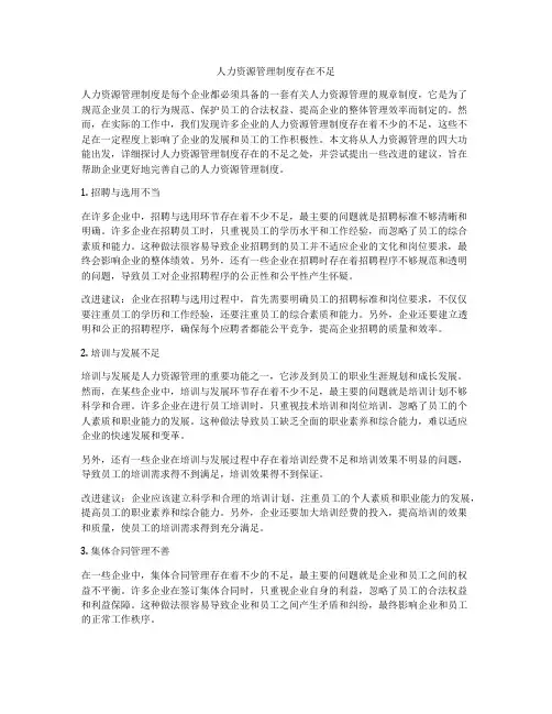 然而,现实中存在着许多人力资源管理方面的不足之处。