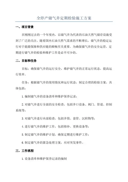 储气库施工方案一、方案背景随着能源需求的不断增长和清洁能源的推广使用,储气库作为一种重要的能源储存形式成为各国关注的焦点。