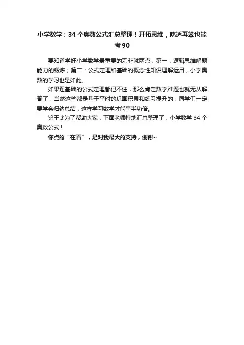 小学数学:34个奥数公式汇总整理!开拓思维,吃透再笨也能