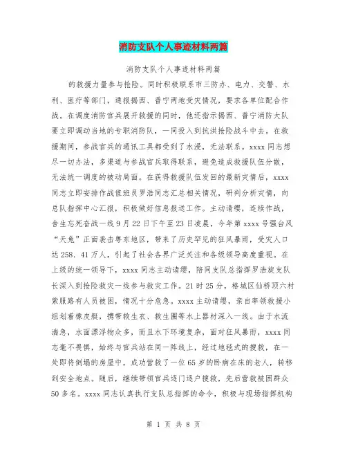 消防支队个人事迹材料两篇消防支队个人事迹材料两篇的救援力量参与抢险。