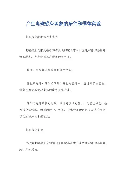 产生电磁感应现象的条件和规律实验电磁感应现象的产生条件电磁感应现象是指导体在变化的磁场中会产生电动势和感应电流的现象。