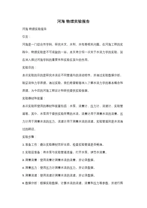 河海物理实验报告河海物理实验报告引言:河海是一门综合性学科,研究水文、水利、水电等相关问题。