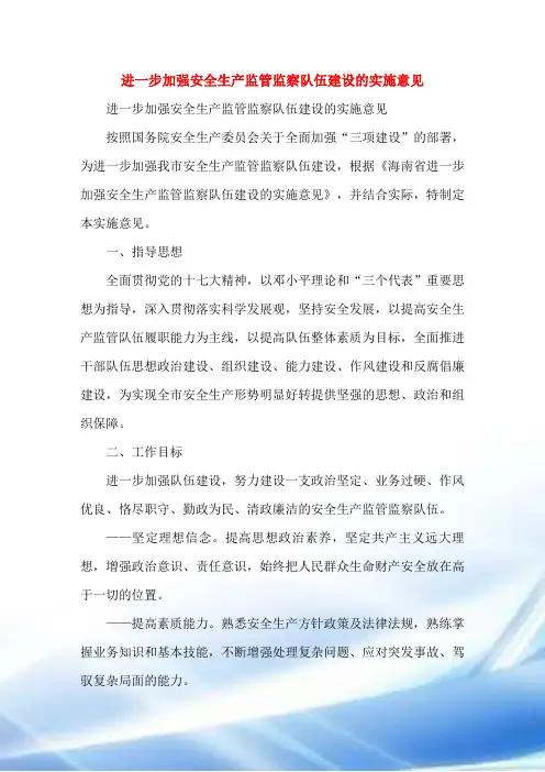 一、加强安监队伍建设1.完善培训机制安全监管队伍是保障安全工作有效开展的基础。