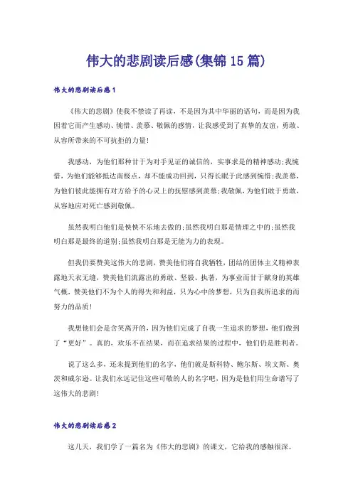 伟大的悲剧读后感15篇伟大的悲剧读后感15篇当品读完一部作品后,相信大家都积累了属于自己的读书感悟,需要回过头来写一写读后感了。