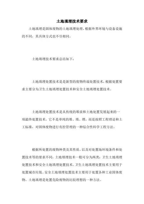 二、卫生土地填埋的原理卫生土地填埋是一种将固体废物埋入土壤中进行处理的方法。