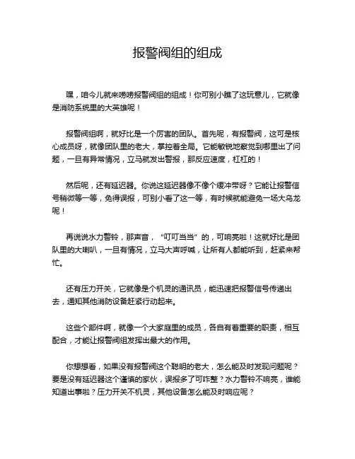 湿式系统、自动喷水防护冷却系统中均采用此阀组,其实际外观以及内部结构如下:湿式报警阀3D图湿式报警阀剖面图1、湿式报警阀结构中名称如图所示,相对来说比较简单。