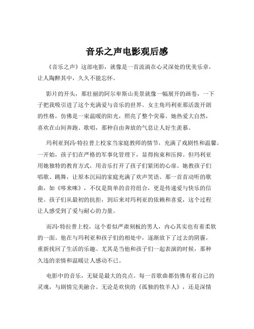 《音乐之声》电影观后感在光影交错的银幕世界里,有一部经典之作,它如同一股清新的风,吹拂过每一个渴望自由与梦想的心灵——那就是《音乐之声》。