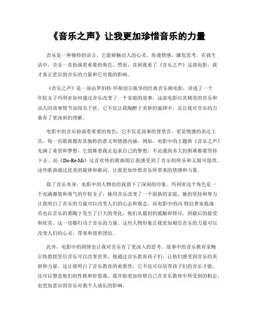 《音乐之声》让我更加珍惜音乐的力量音乐是一种独特的语言,它能够触动人的心灵,传递情感,激发思考。