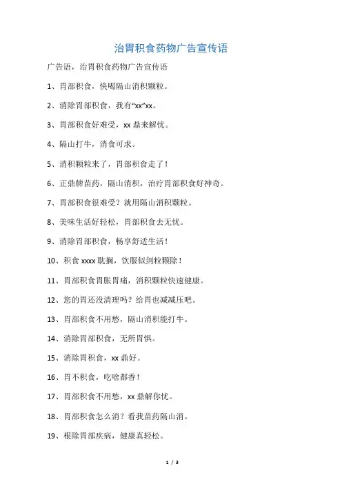 胃积食药物广告词广告语,胃积食药物广告词1、胃部积食君莫愁,正鼎良效倾无忧。