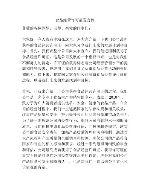 五、申请材料1. 营业执照复印件2. 负责人身份证明复印件3. 从业人员健康证明复印件4. 食品经营场所平面图5. 食品经营设备设施清单6. 食品安全管理制度等相关材料在此,我们郑重承诺,我们将严格遵守食品安全法律法规,切实履行食品安全主体责任,为消费者提供安全、健康的食品。