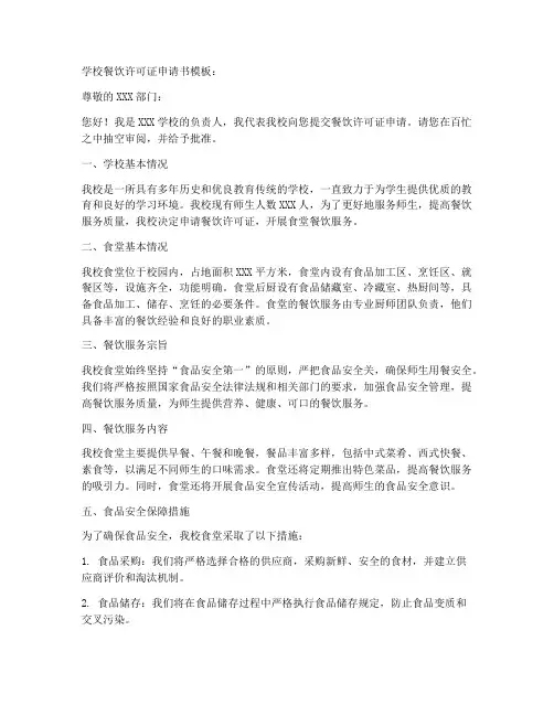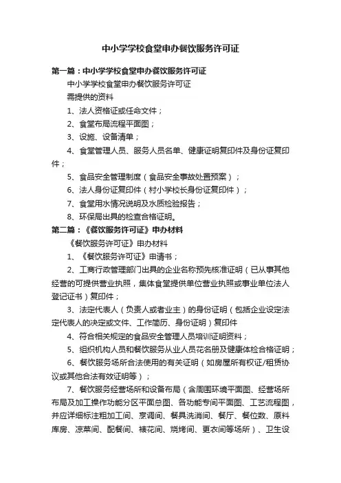 三、许可证办理流程1. 申请许可证在学校食堂经营者需要申请许可证时,须向学校食堂管理部门提出书面申请。