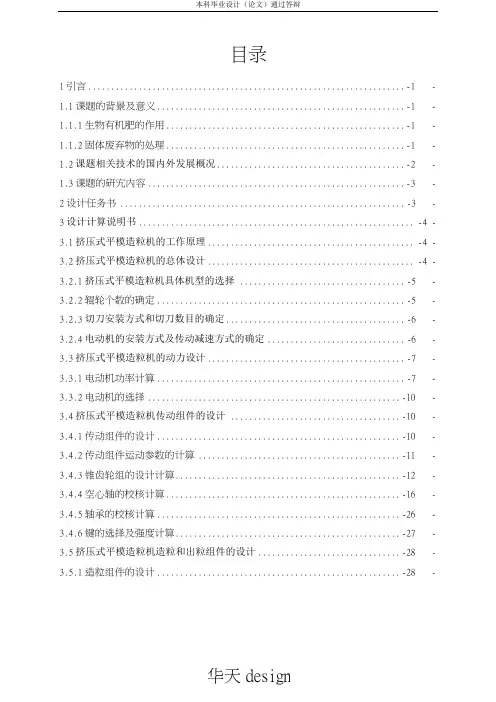 干法辊压式造粒机使用维护说明书目录1.用途与特点2.设备概况3.造粒工艺流程4.设备参数及设备规格5.设备的安装6.设备试运转及调整、运转维护7.附表和附图干法辊压式造粒机使用维护说明书1、用途与特点:本造粒机是采用国外技术,将干粉状化工原料,经脱气压片,粉碎整理筛分等过程,制成符合标准及用户要求的粉状产品。