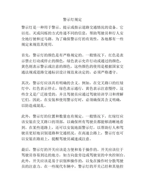 一、警示灯的正确使用警示灯是车辆上的一种重要信号装置,用于警示其他车辆和行人注意。