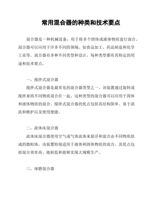 合器、流体床混合器、球磨混合器和双螺杆混合器等。