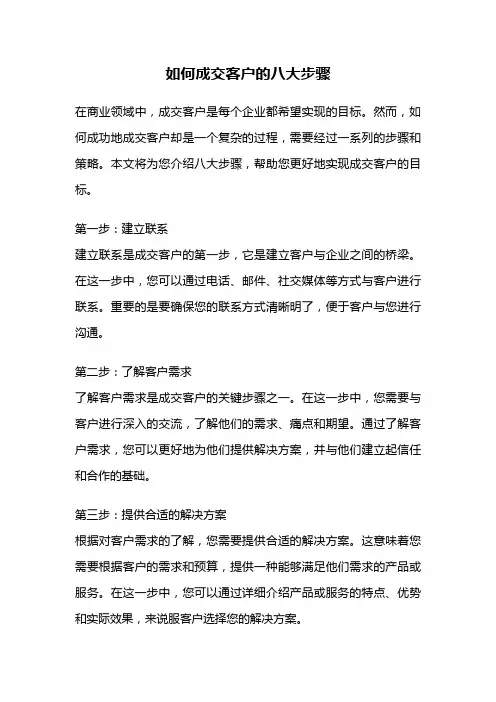 如何成交客户的八大步骤在商业领域中,成交客户是每个企业都希望实现的目标。