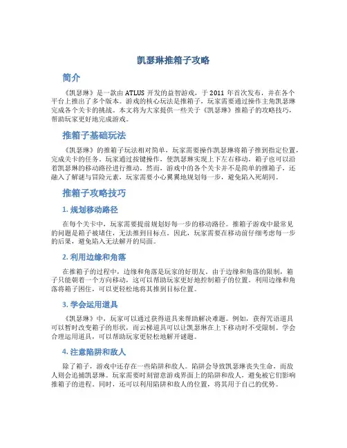 箱子推动技巧1.规划路径:在推动箱子之前,需要先规划好路径,避免陷入死胡同。