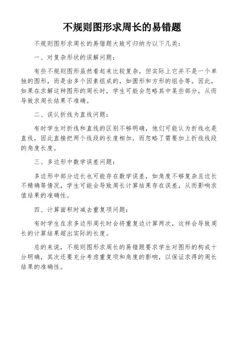 不规则图形求周长的易错题不规则图形求周长的易错题大致可归纳为以下几类: