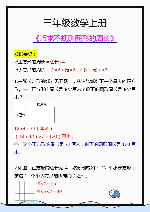 三年级上册不规则图形周长计算题学习目标:掌握计算不规则图形周长的方法,提高数学计算能力。