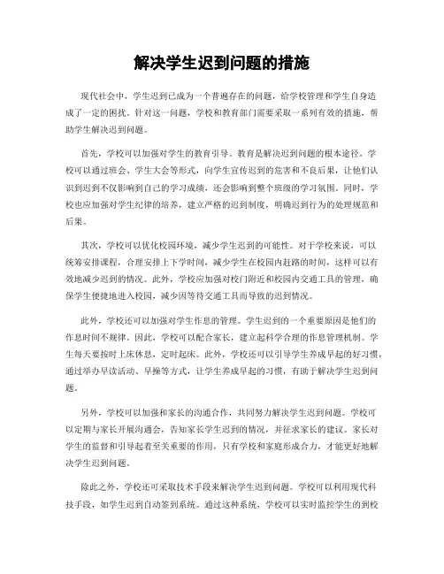 解决学生迟到问题的措施现代社会中,学生迟到已成为一个普遍存在的问题,给学校管理和学生自身造成了一定的困扰。